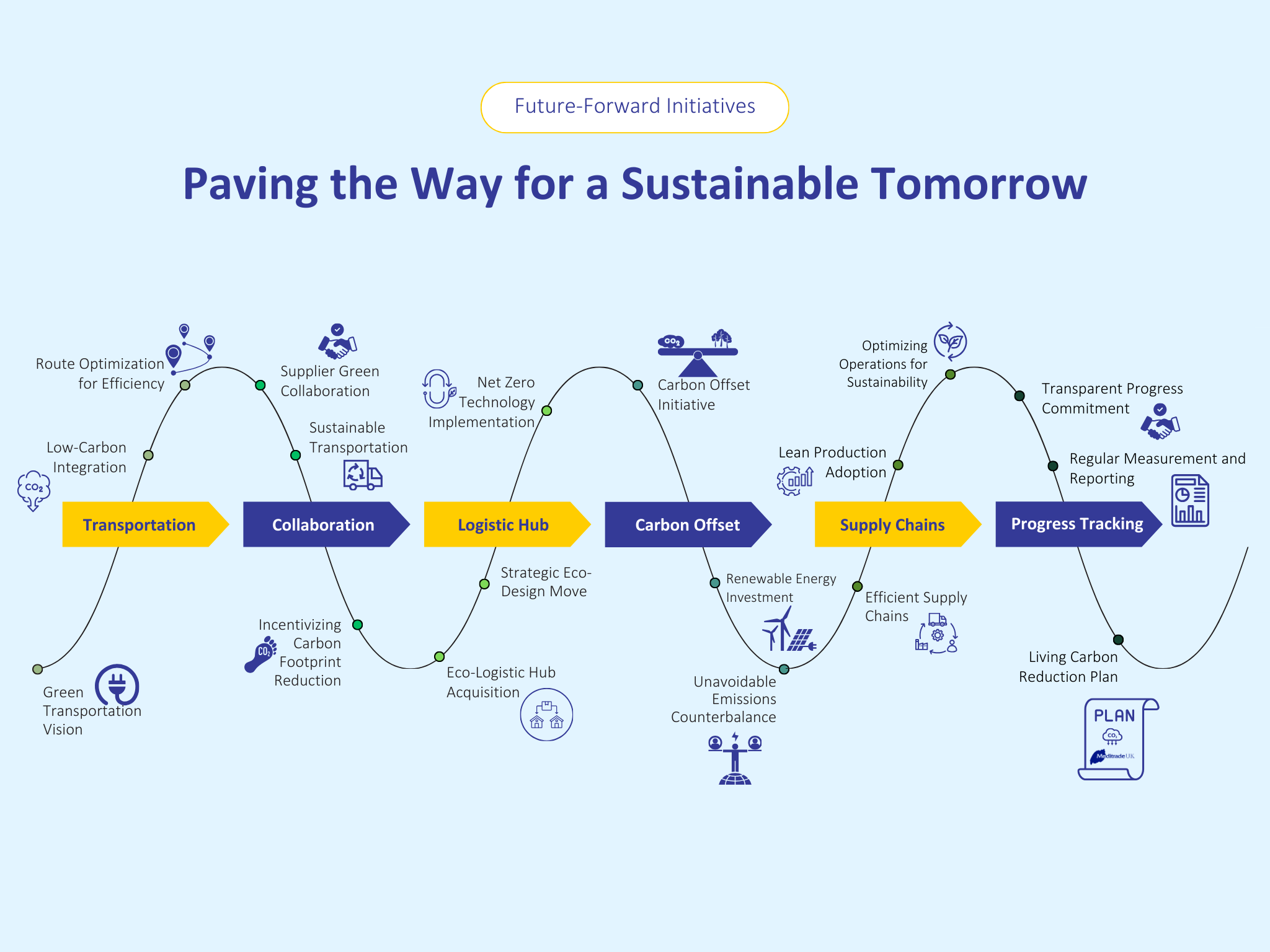 Acknowledging the inevitability of some emissions, Meditrade plans to implement a carbon offset program. Investing in renewable energy or carbon capture projects will ensure that unavoidable emissions are counterbalanced, contributing to a net-zero impact.